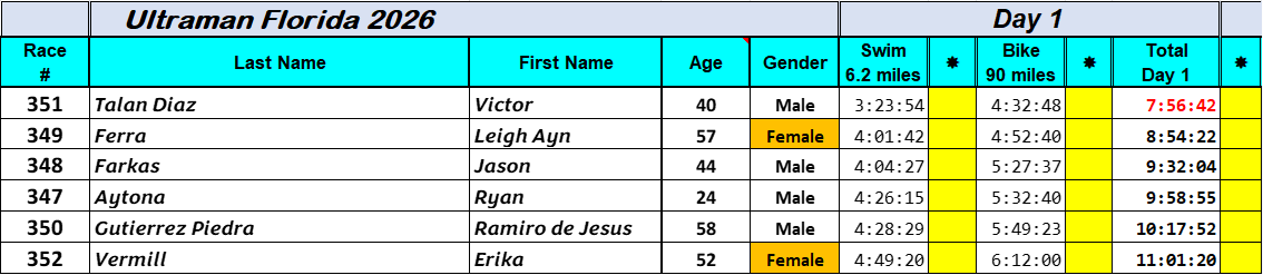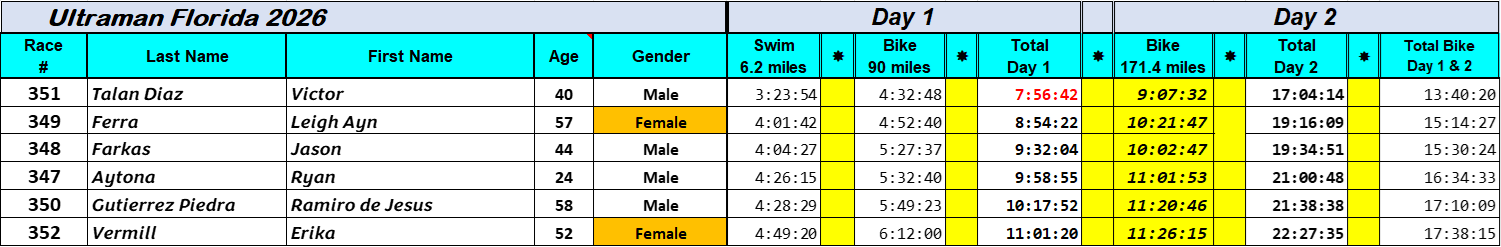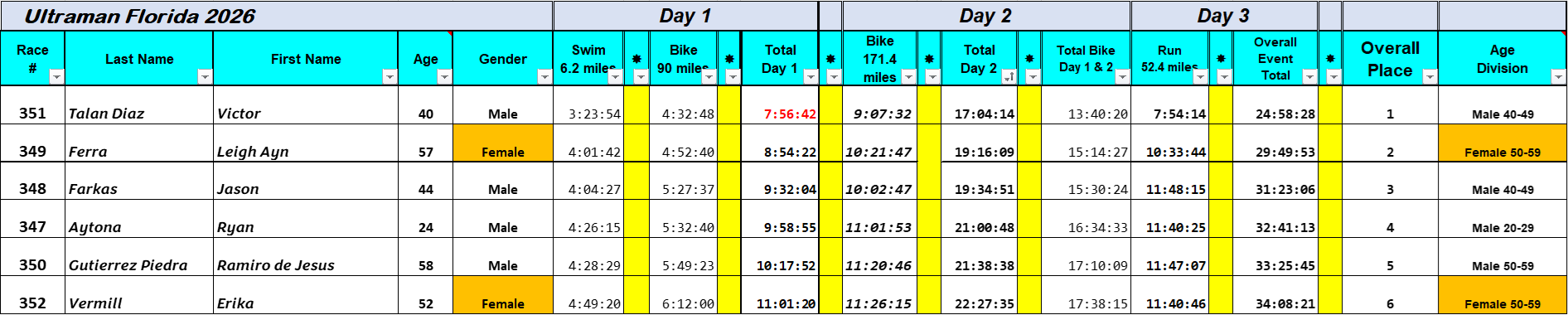 Day 3 Results – These are the final results for Ultraman Florida 2026 – What a great event!!!!!!